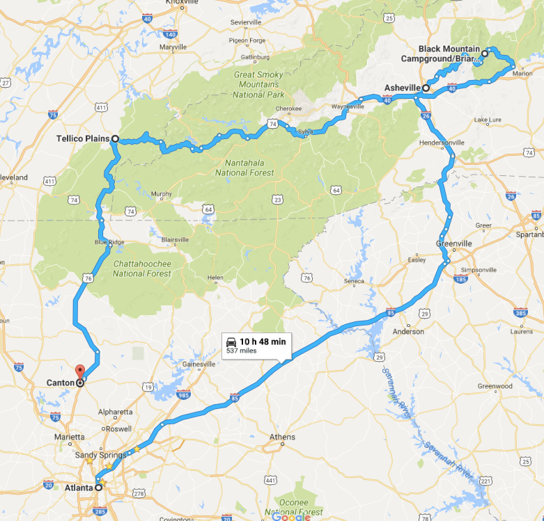 After we made it back down to the RV, we ate a quick snack and decided to head to Tennessee and check out a camping spot in Tellico Plains that Brandon had been wanting to check out.