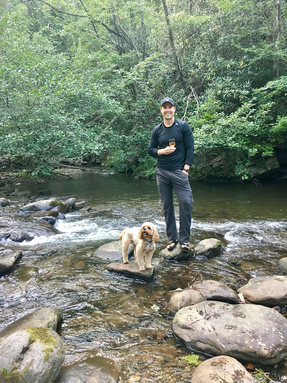 After Brandon found some new hiking shoes, the exact same kind he has in 2 other colors, haha... we hit the road for the North side of Pisgah National Forrest. We had decided on Black Mountain Campgrounds and decided to stay in one of the free first come lots. It was a beautiful spot but unfortunately had not been well taken care of. Sadly we clean up a lot of camp sites we stay at but this one was the worst by far. We filled up an entire trash bag of rotted garbage, rusted cans, coat hangers and cigarette butts. We combed over the area really well so Liam's paws or nose didn't find anything we missed. Being far out does not bode well for emergency vet visits!