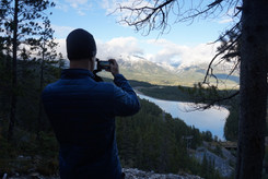 The views on the way up are stunning, but once you get to the top, the lakes are so reflective and peaceful! We met some super nice (shocker) Canadians at the top and asked them to take our pic...
